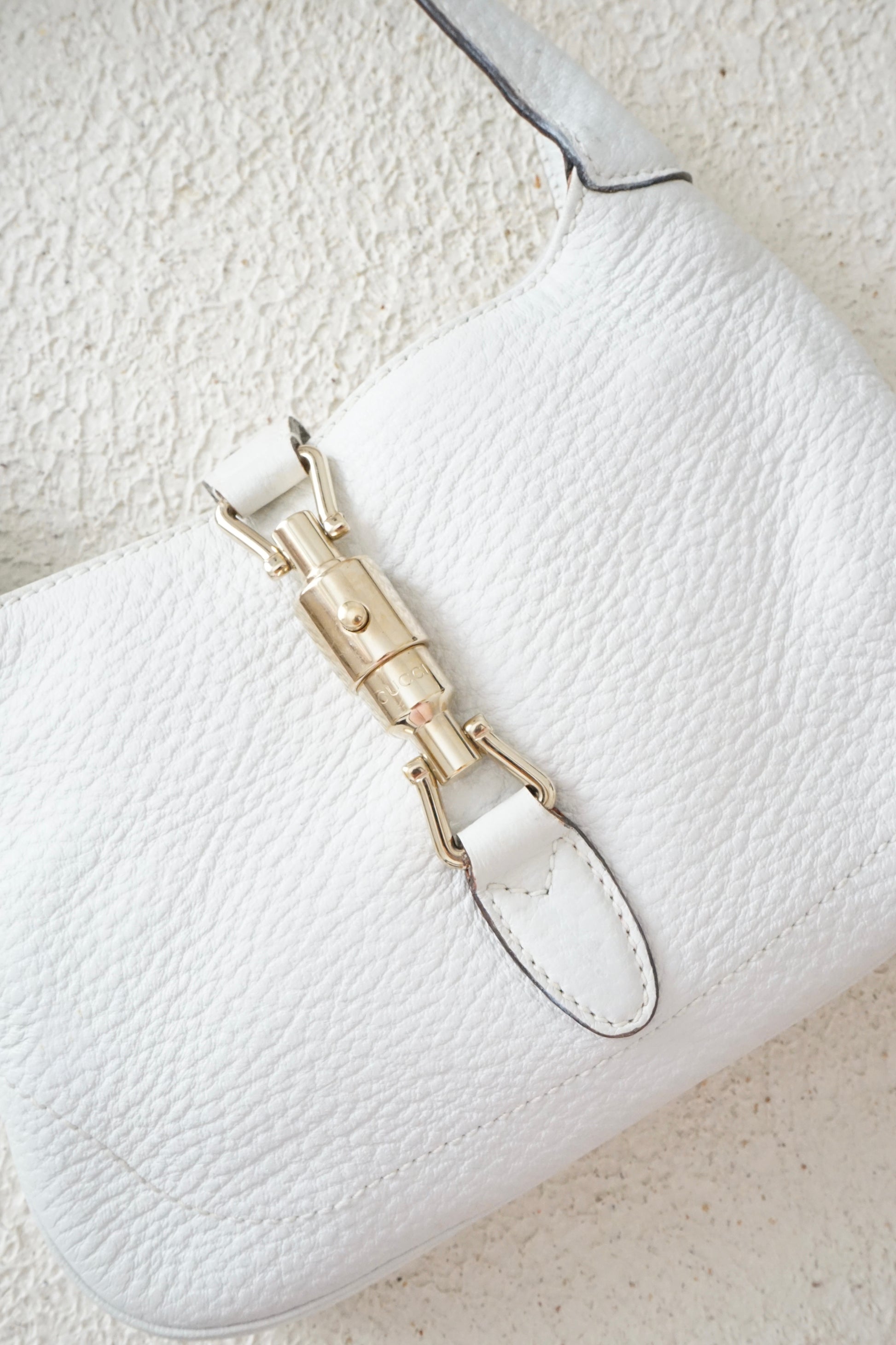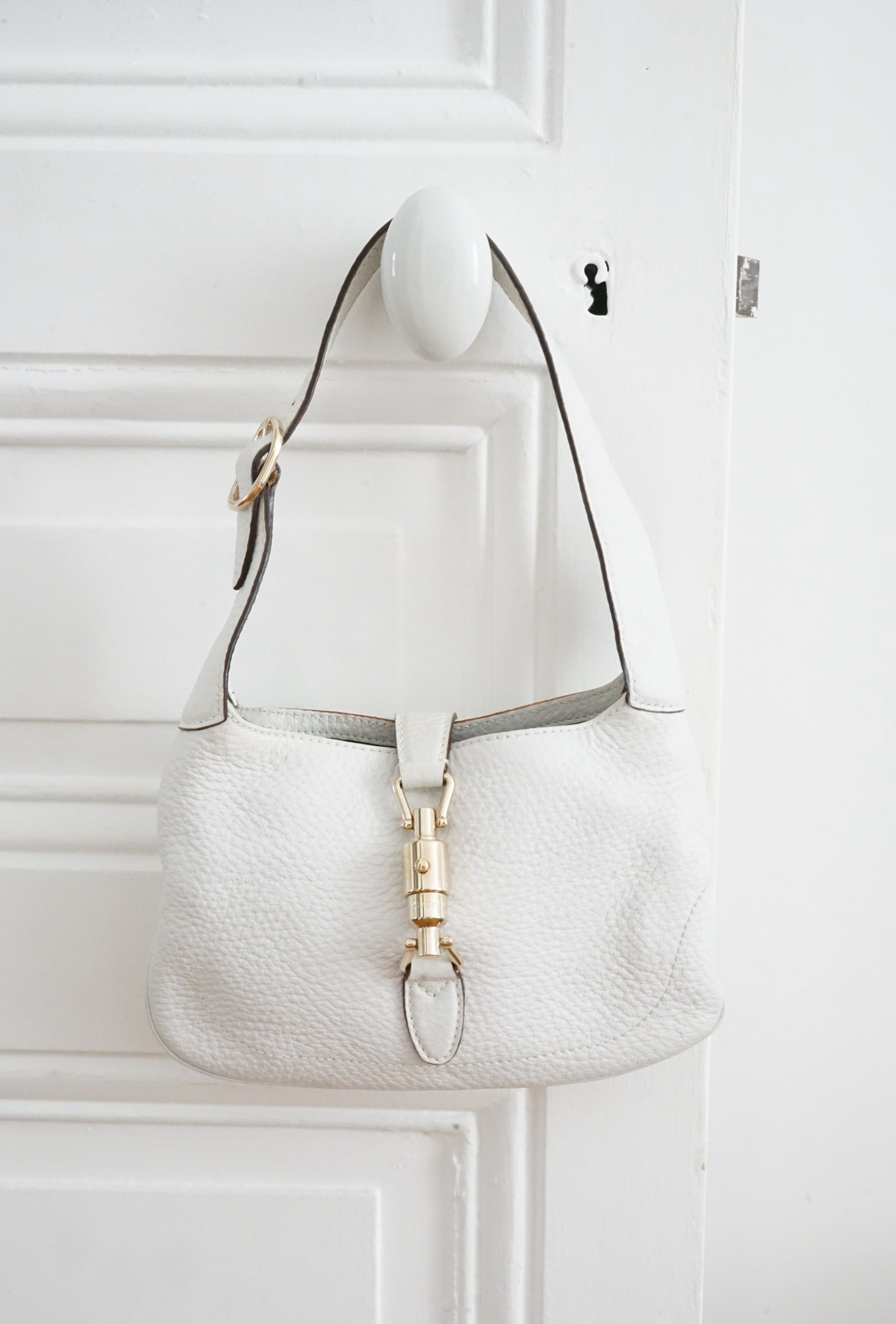 Vintage Gucci Jackie 1961 bag in white leather gold hardware in very good condition, high-quality leather lining.