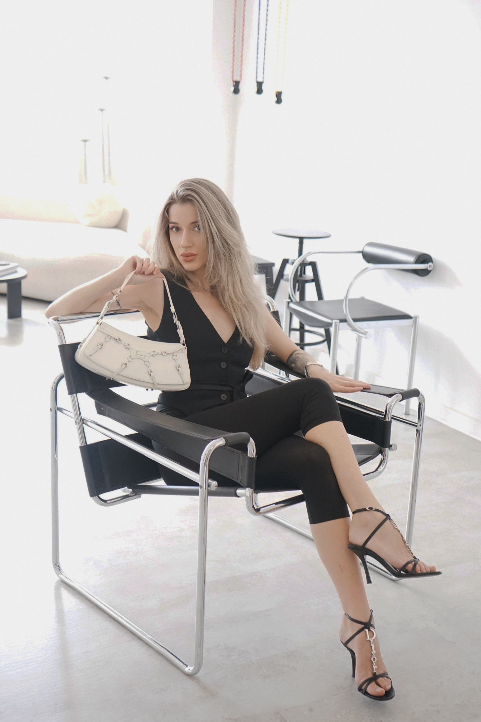 Vintage Dior by John Galliano white leather Bondage bag